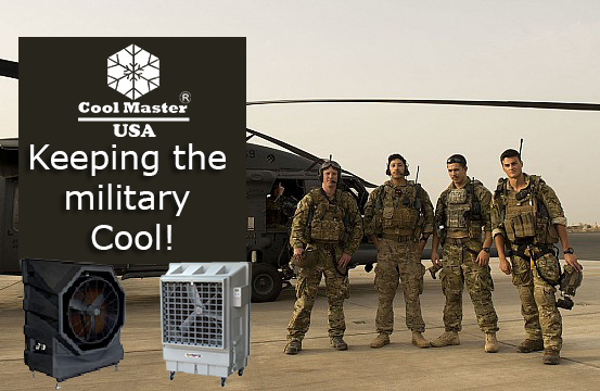 The sacrifices our fighting men and women for us should never be forgotten. Often they are required to perform these and many other duties in foreign climates and extreme heat. Extreme heat can be dangerous causing illnesses such as heat cramps and heat stroke, or even death. In such way Cool Group LLC find most effective solutions, most efficient and environmentally friendly cooling system during the hottest times of the day and when humidity levels are below 60 percent. Cool Master America Evaporative Cooling machines offers a completely natural way of producing fresh, filtered and refreshing cool air with lower energy consumption drastically compared to traditional air conditioning systems. We believe you'll find the perfect cooling system to allow your troops a bit of relief.