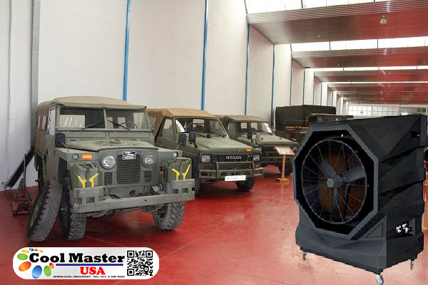During summer days aircraft hangers can be miserable experience especially for military camps, due to the sun and hot temperature. The heat of summer and humidity levels in foreign countries can make aircraft maintenance unendurable and difficult to perform certain tasks. Cool Master Evaporative Cooling Machine help reduce temperature, improve productivity and reduce fatigue. Cool Group LLC Company dedicated itself to find a better solution to cool and maintain the area comfortable and prevent heat-related illnesses.